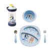 - More Bluey, More Fun: This Bluey combo includes both a 4 piece mealtime set and Sip & See water bottle